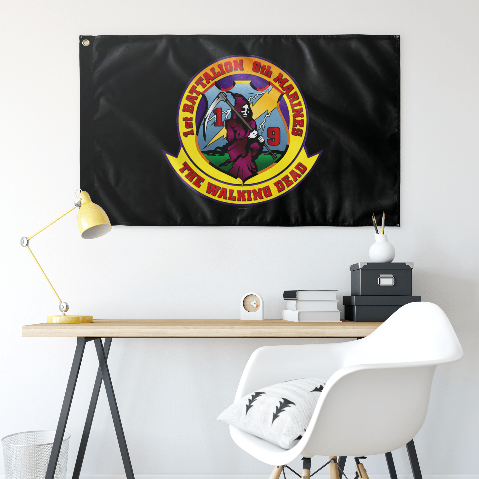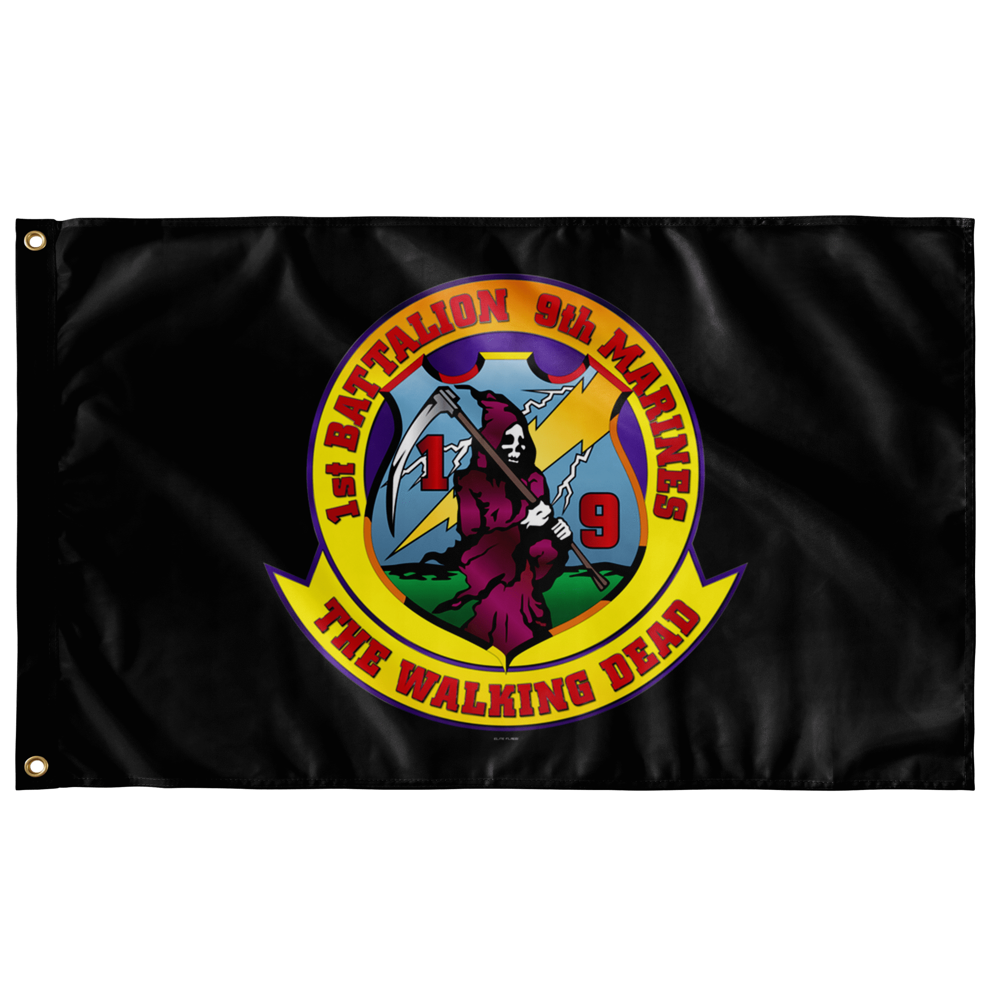 1st Battalion 9th Marines (1/9) Black indoor flag.